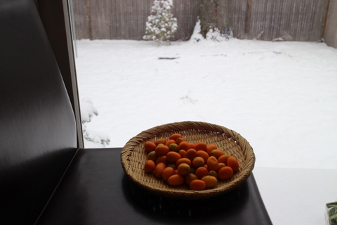 と心配していてもしょうがないので、冷蔵庫にある金柑の甘露煮のシロップとショウガでお茶を作って飲んだら、体がぽかぽかして気分が落ち着いてきました。金柑のシロップがなくてもレモンと蜂蜜でも簡単に作れるので、外にも出られないこんな大雪の日には体が温まるし、リラックスできておすすめです。